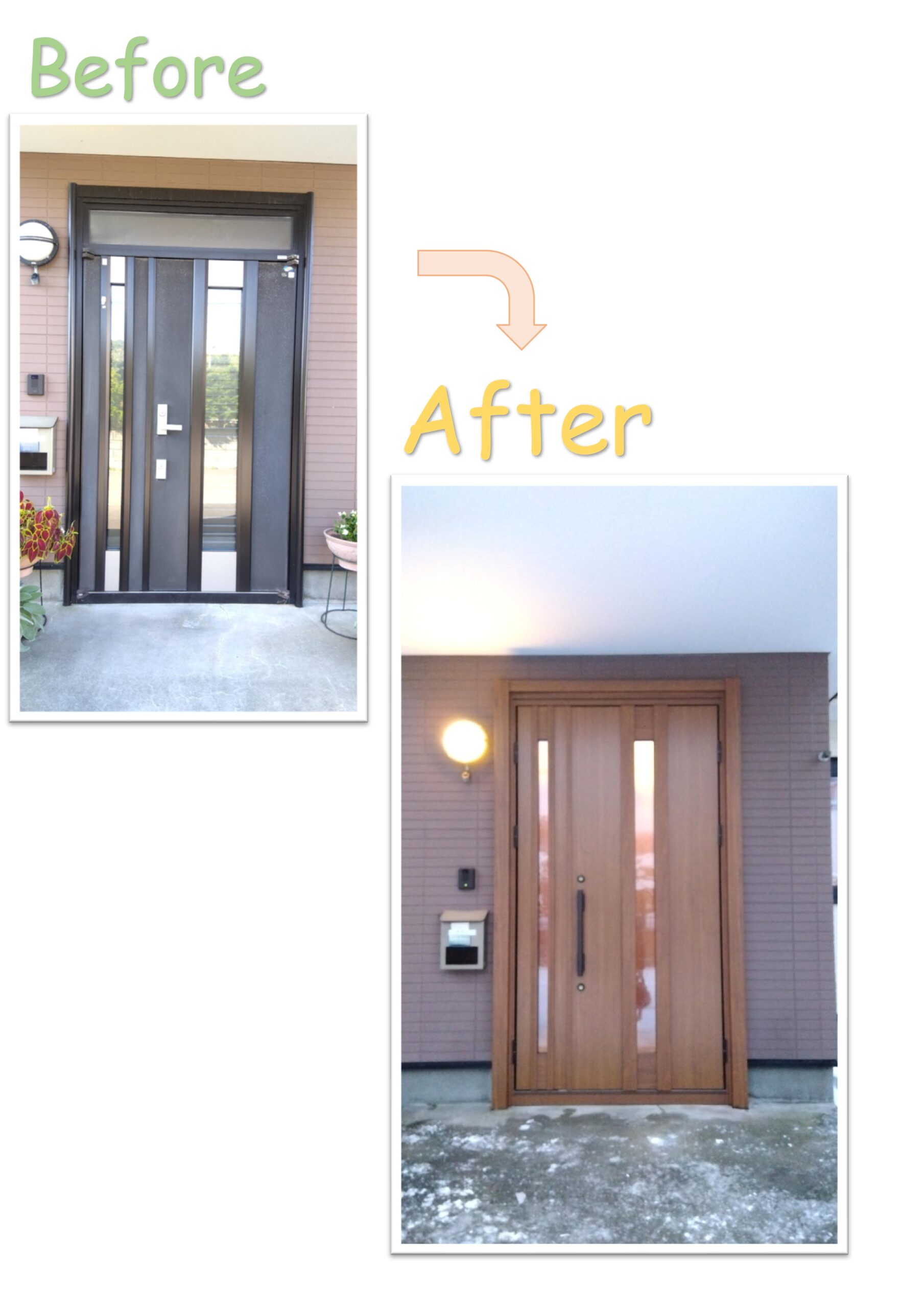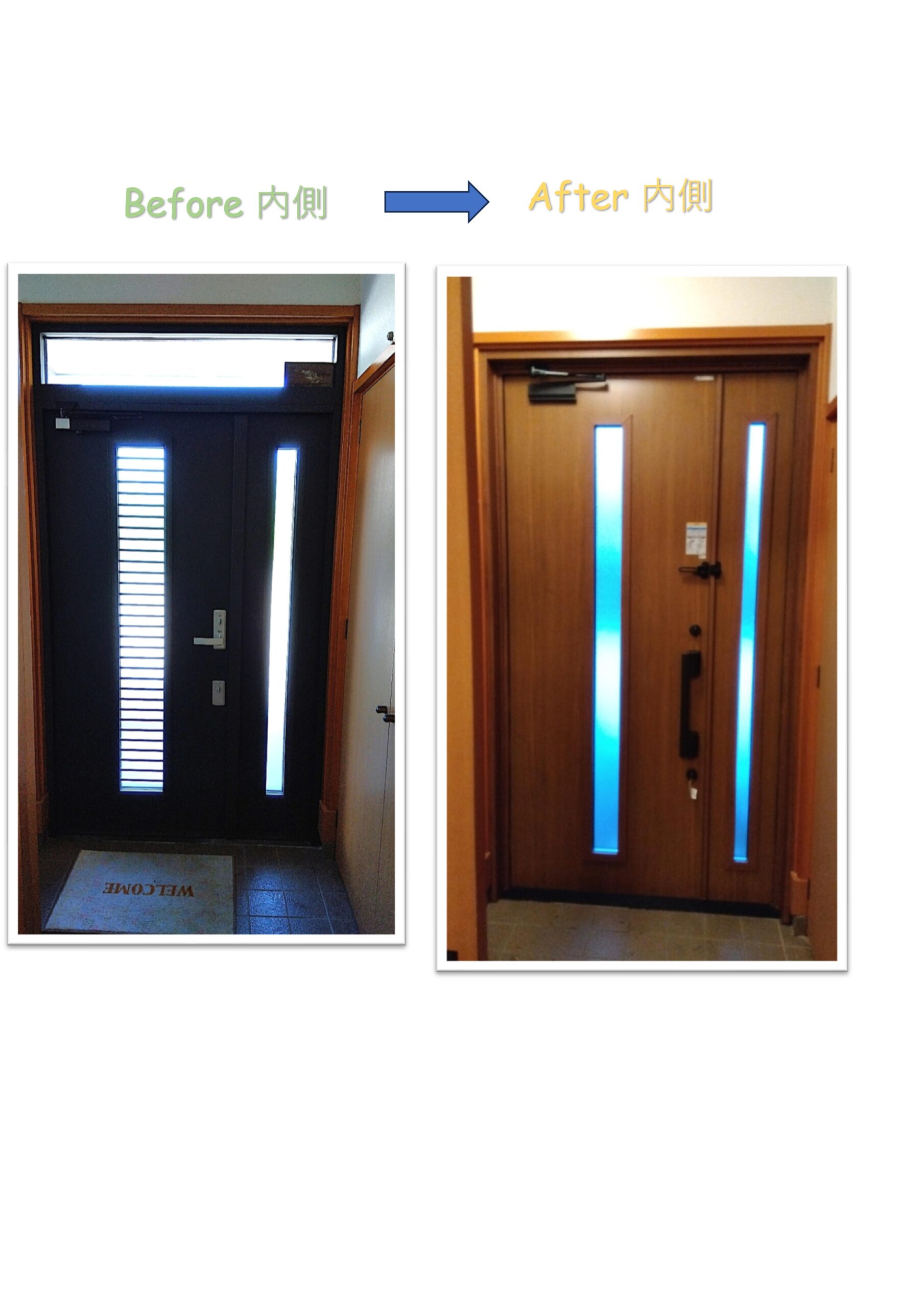 ドアの色は以前は黒でしたが、木目調のブラウン色のドアに交換することで、玄関内の明るさも以前と遜色のない状態で保つことができています。