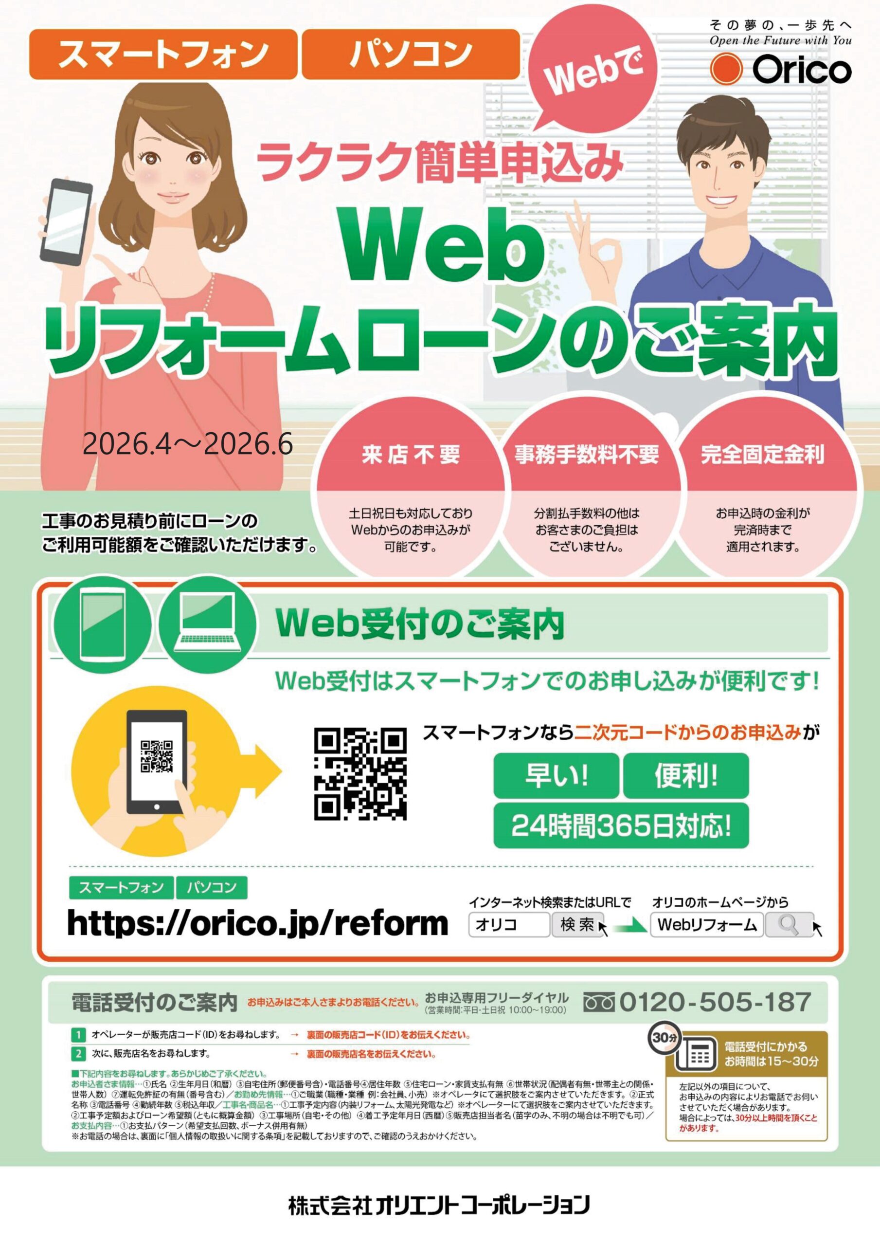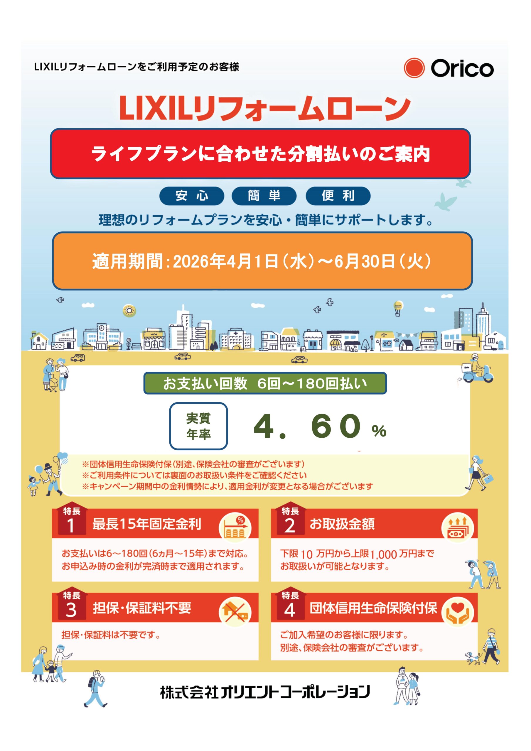 『リフォームで快適な住まいにしたい!でもまとまった資金がない…』という方のために、当社ではオリコリフォームローンをご用意しております。